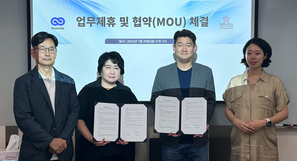 [공감신문] 신선미 기자=세계뷰티건강상담사협회(회장 주금예)와 주식회사 프로토타이(대표 박승현)가 2025년 7월 28일 업무양해각서(MOU)를 체결하고 AI 기반 교육 플랫폼을 활용한 전략적 협력관계에 나섰다.이번 양해각서의 핵심은 프로토타이의 PROTIE AI 플랫폼을 활용하여 세계뷰티건강상담사협회 소속 강사들을 등록·매칭하는 혁신적인 교육 생태계를 구축하는 것이다.